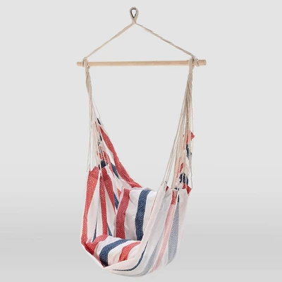 Add ultimate comfort to your backyard or patio space with this Cushioned Hammock Chair with Spreader Bar from Threshold™. Crafted from weather-resistant material for convenient outdoor use, this hammock chair comes with seat cushions for cozy lounging, while the wooden spreader bar adds extra comfort and makes it easier to climb in. Hang this cushioned hammock chair from a tree branch or porch ceiling to create a great spot to enjoy peaceful moments outdoors.